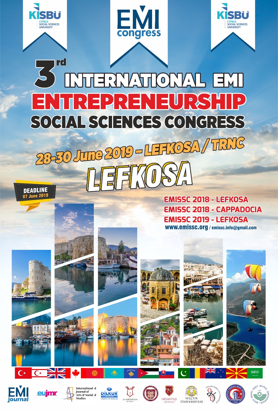 The 3rd International EMI Entrepreneurship and Social Sciences Congress will be held in Nicosia on 28-30 June 2019 hosted by the Cyprus Social Sciences University. The language of the congress is English & Turkish. Deadline for abstract submission is June 7, 2019. Congress application and acceptance process will be done via abstract text. Academicians from Canada, England, Kyrgyzstan, Kazakhstan, Saudi Arabia, Romania and TRNC will also participate in our congress. The paper will be published in the "Congress Paper" ISBN and the full texts will be published in journal such as "International Journal of Entrepreneurship and Management Inquiries - Journal EMI"